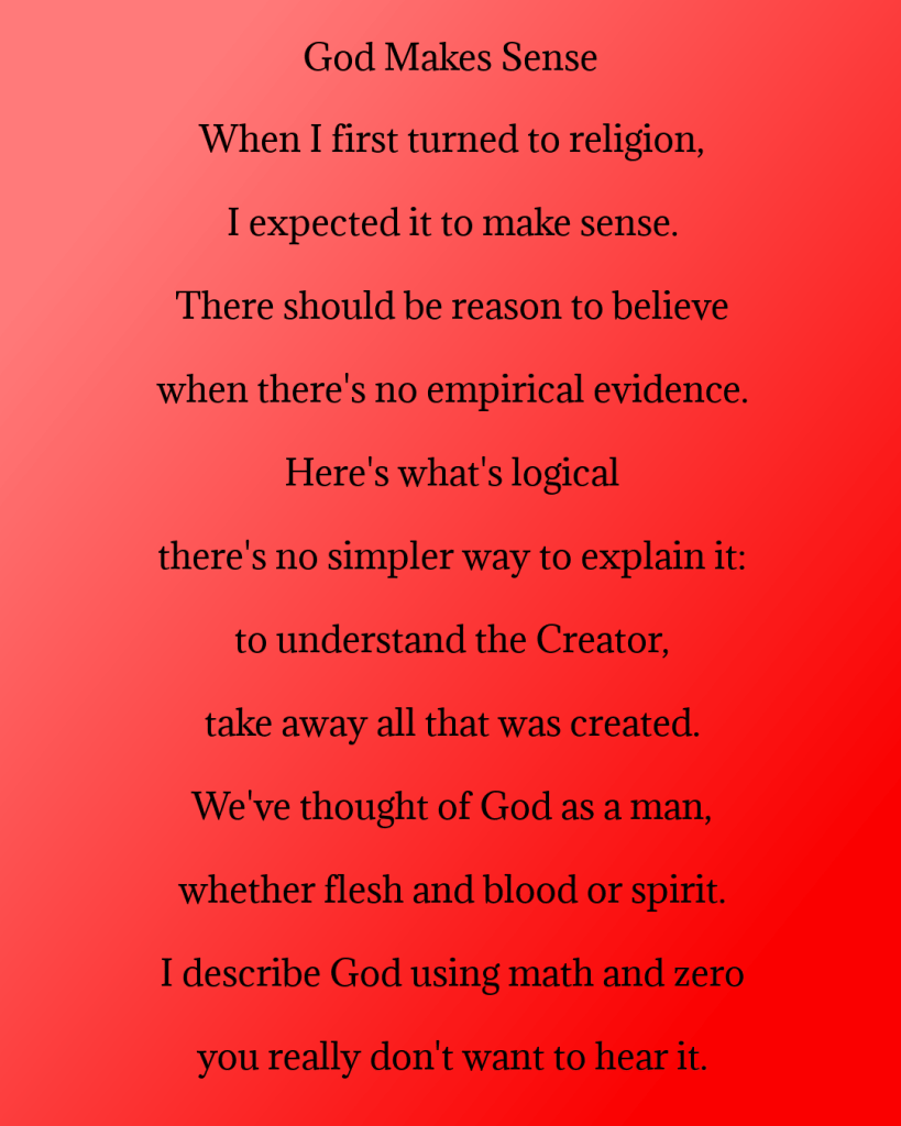 It’s funny. Even though I shocked and scared myself and thought I committed the worst blasphemy of all time when I initially made the breakthrough that led me to the analogy, God is to reality what zero is to math, I still get surprised when both the religious and atheist reject this concept. Somehow, people seem to think I’m saying God does not exist. That’s just asinine.